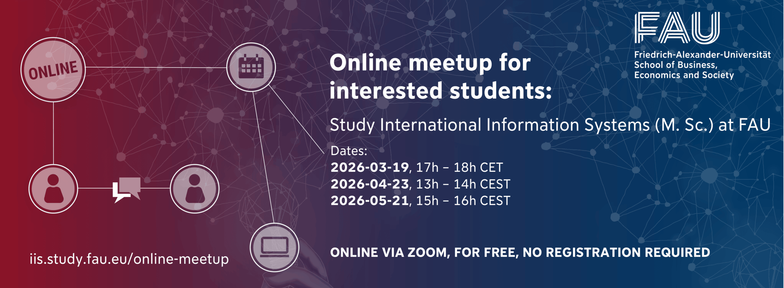 For questions about application requirements, please contact the M.Sc. International Information Systems committee at studium-iis@fau.de.
